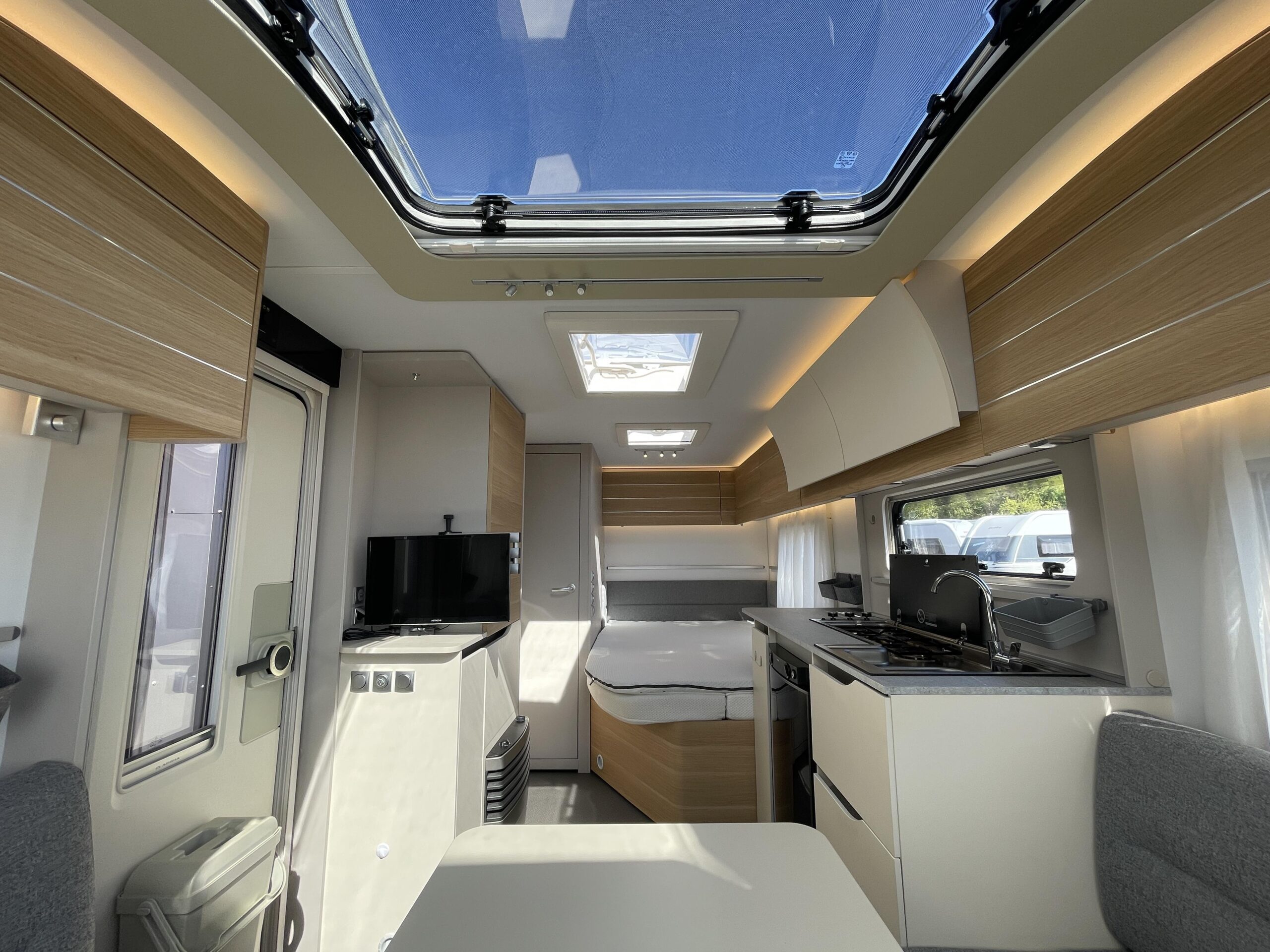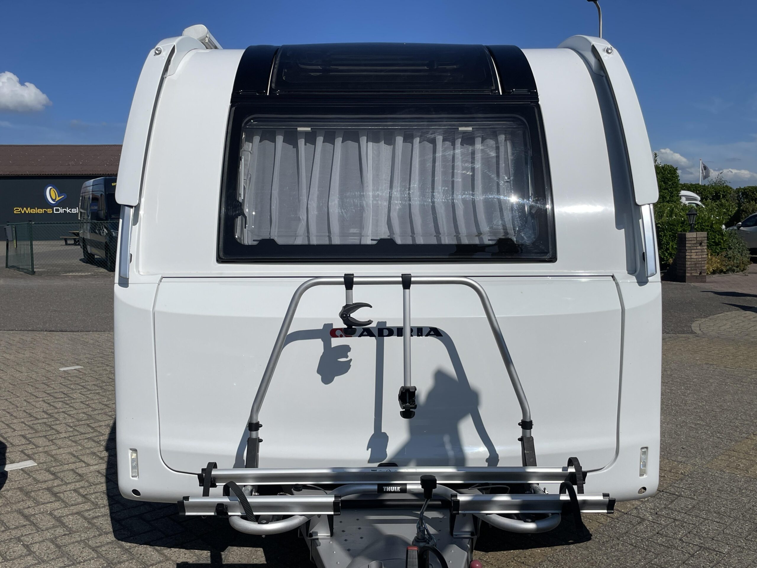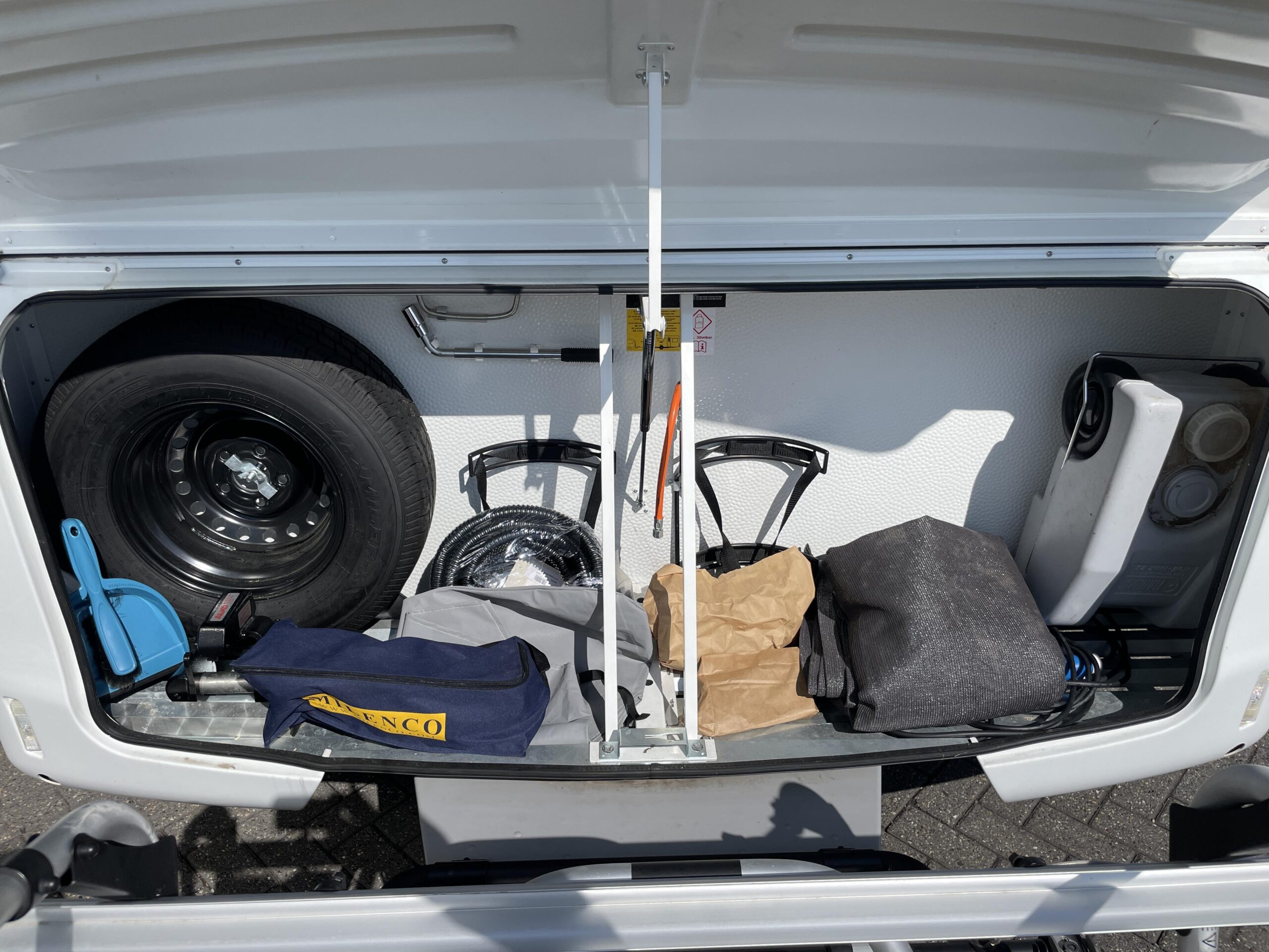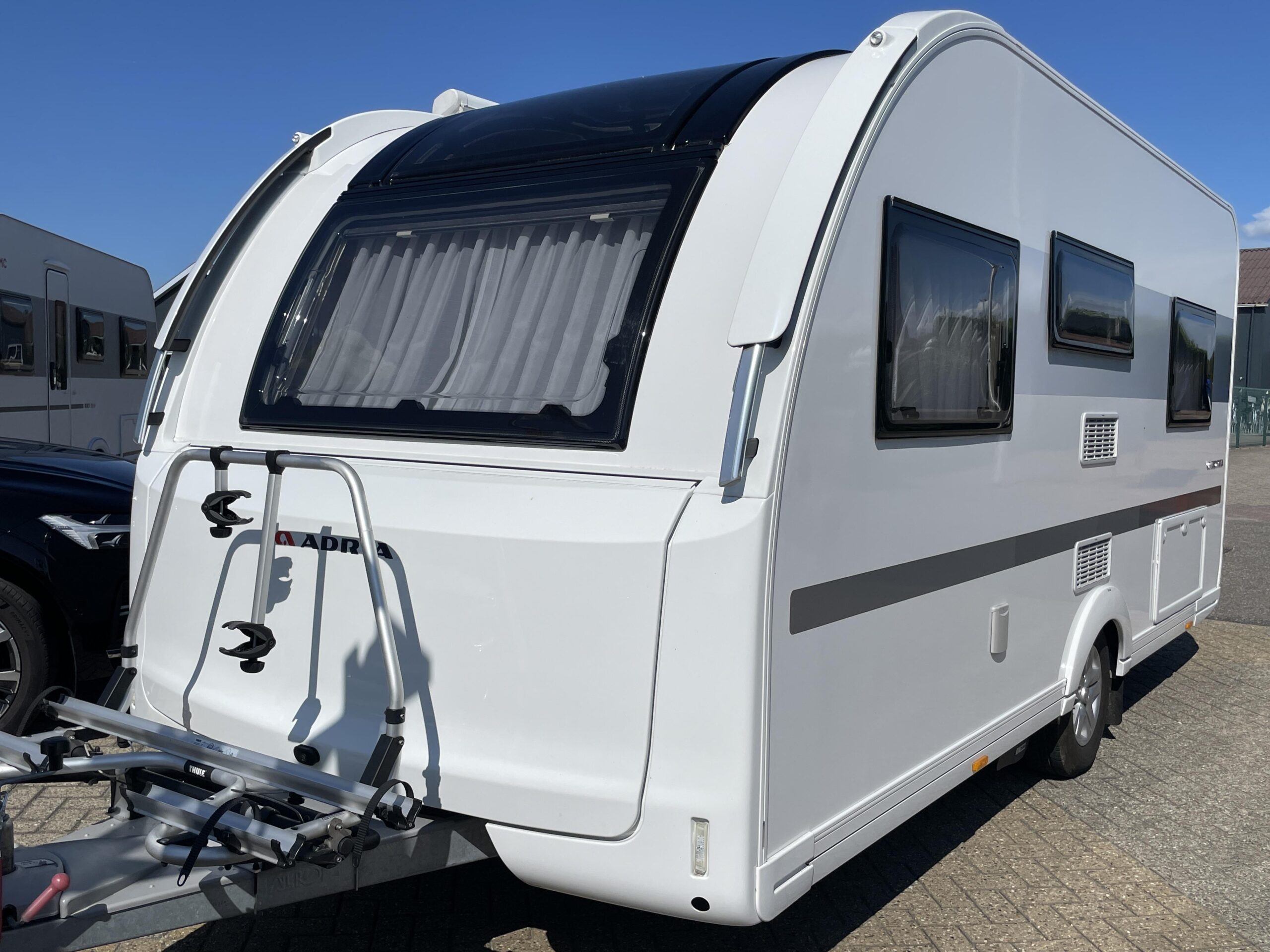 De caravan is namelijk voorzien van een Luifel, Hordeur, Boiler, Fietsendrager, Vloerverwarming, Zijwand van het merk Thule voor de luifel, Auto Steady (electrische uitdraaisteunen), Litium accu met Autarkpakket (12v systeem waarmee zonder stroom van buitenaf de verlichting etc. gebruikt kan worden), Volautomatische mover van het merk Enduro, magnetron, Smart TV, Alko ATC (antislingersysteem), Geluidsinstalatie met Bluetooth en een reservewiel.