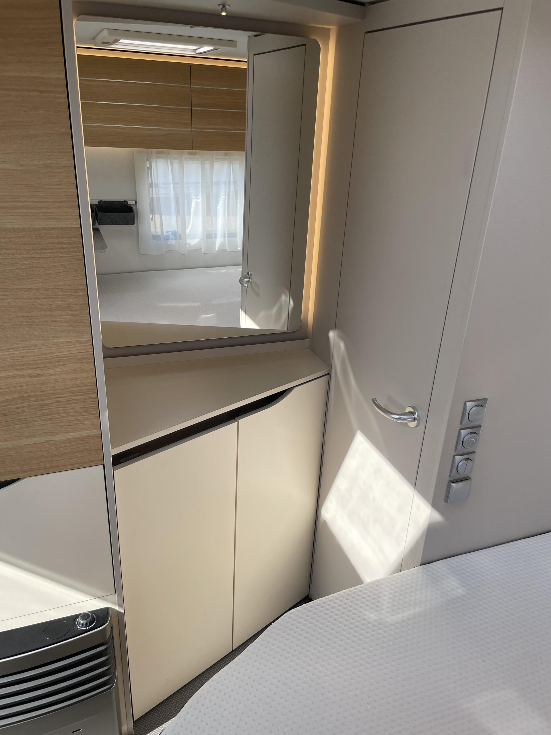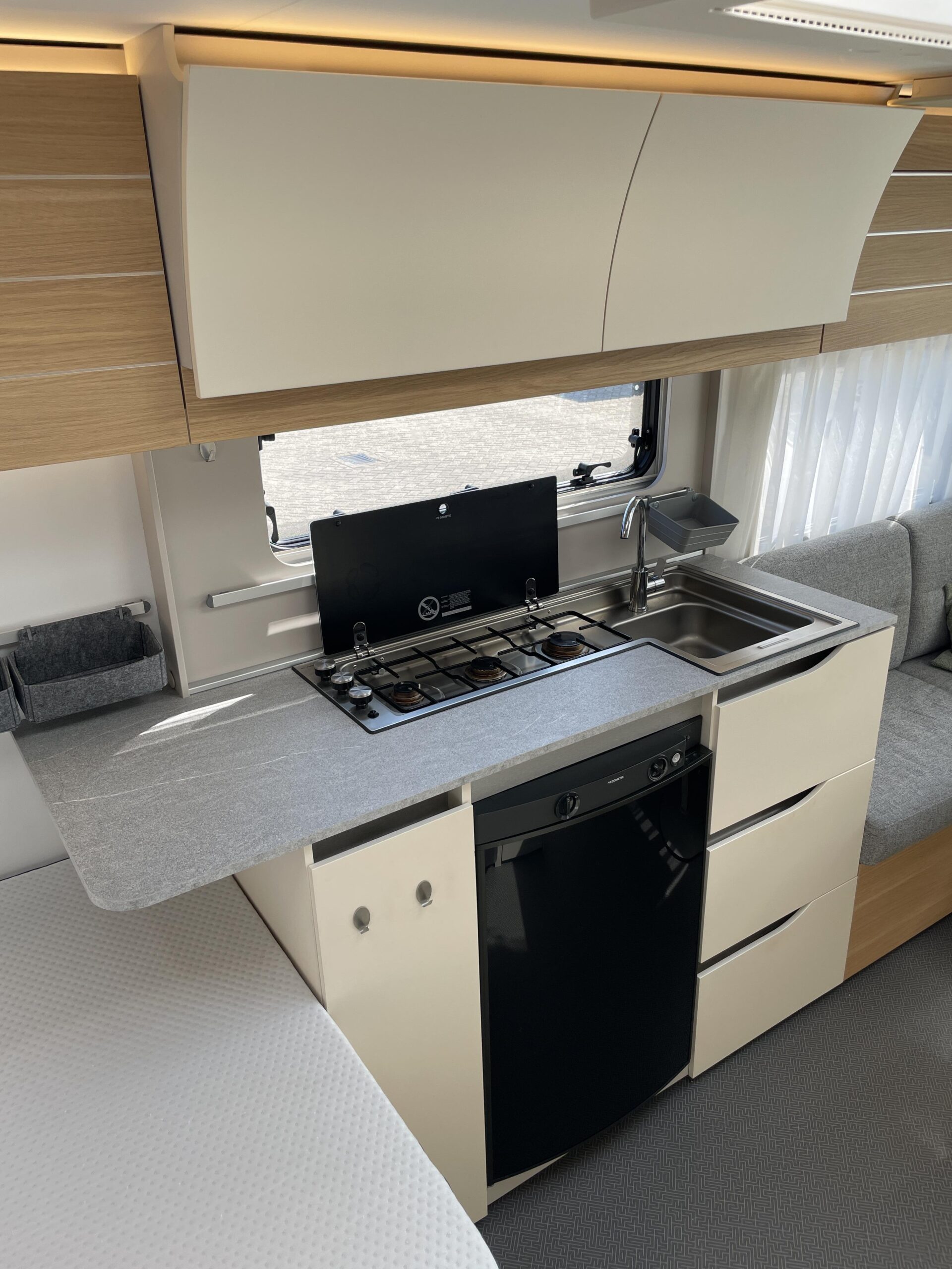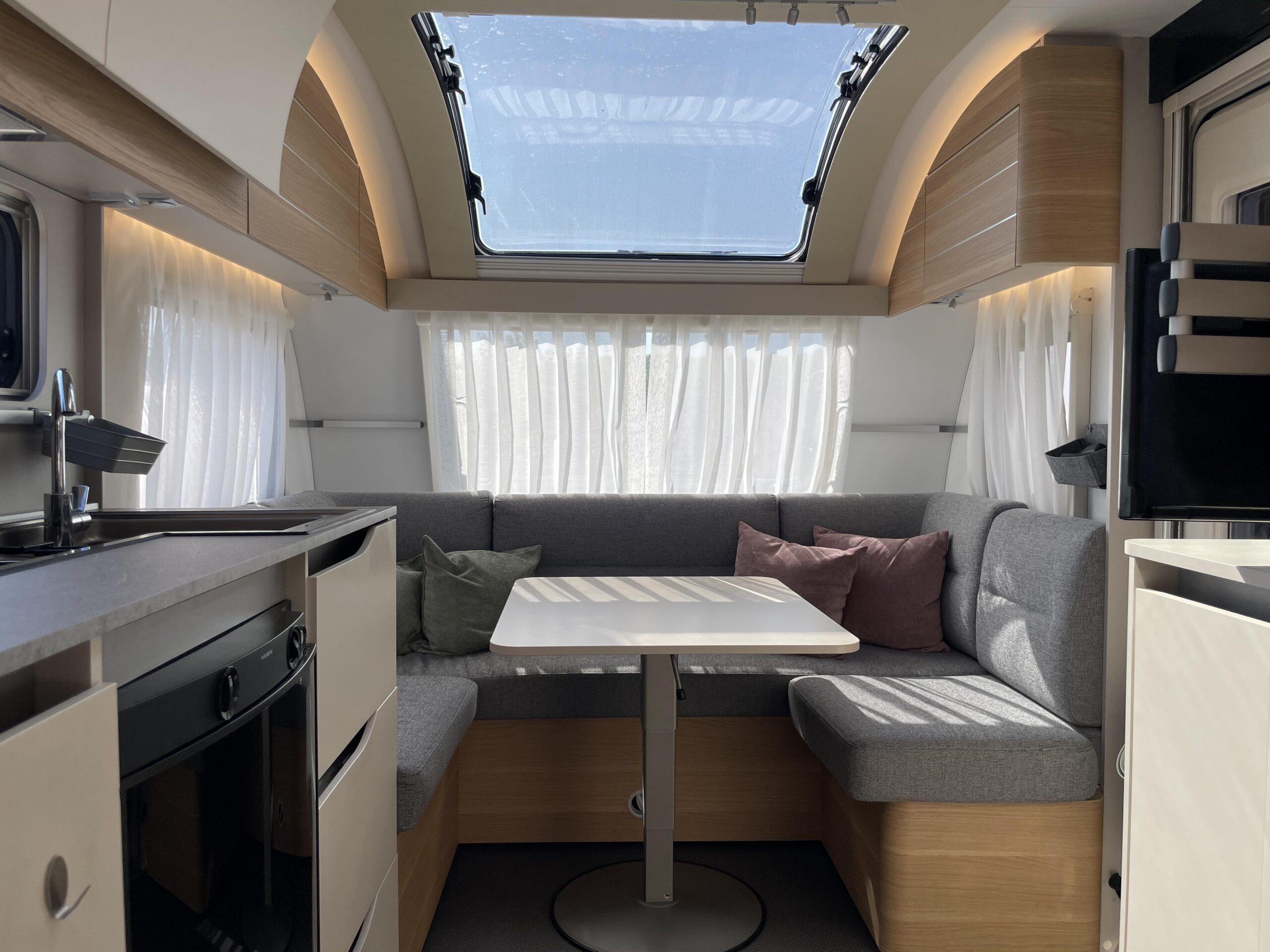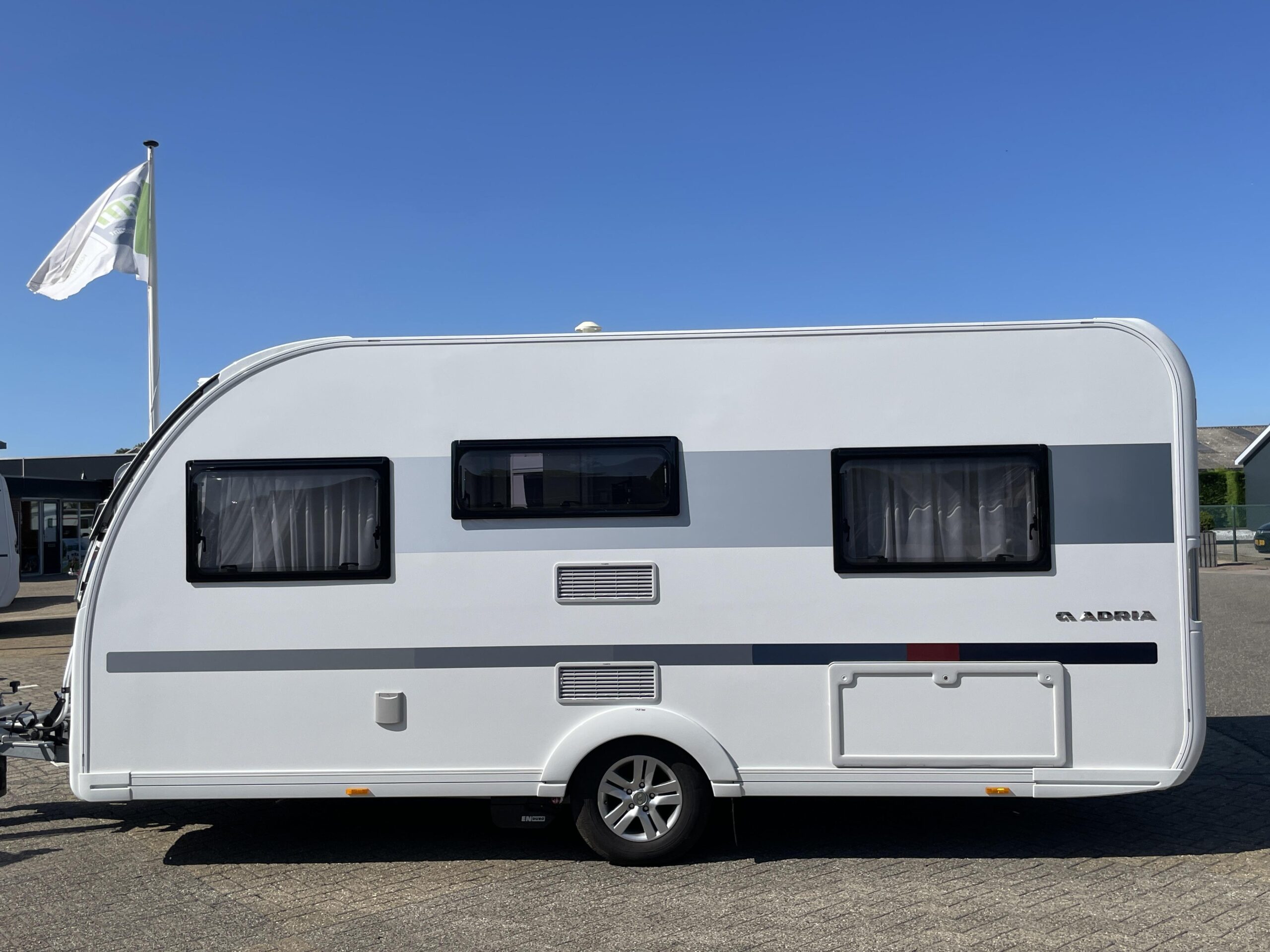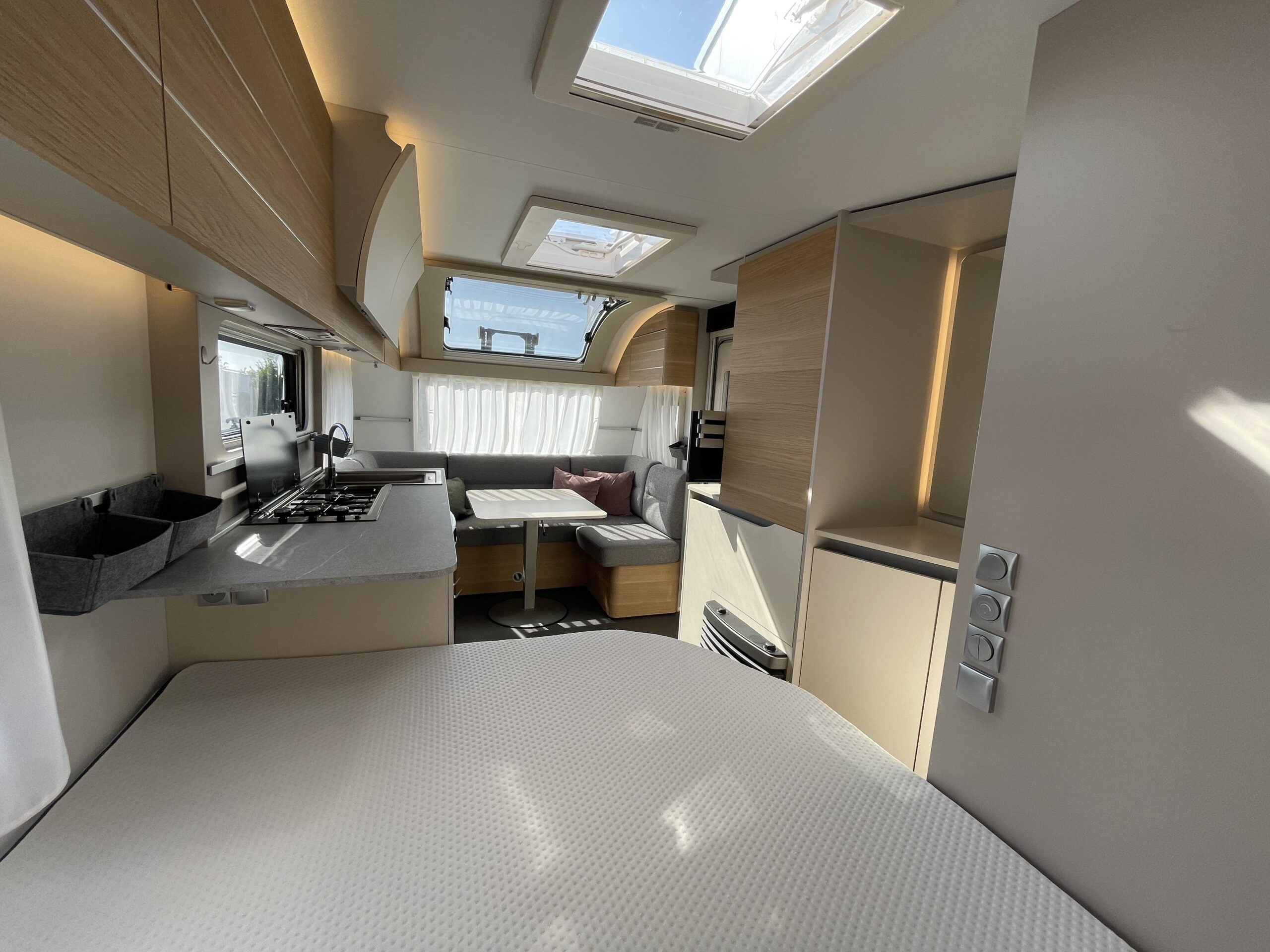 De caravan is namelijk voorzien van een Luifel, Hordeur, Boiler, Fietsendrager, Vloerverwarming, Zijwand van het merk Thule voor de luifel, Auto Steady (electrische uitdraaisteunen), Litium accu met Autarkpakket (12v systeem waarmee zonder stroom van buitenaf de verlichting etc. gebruikt kan worden), Volautomatische mover van het merk Enduro, magnetron, Smart TV, Alko ATC (antislingersysteem), Geluidsinstalatie met Bluetooth en een reservewiel.
