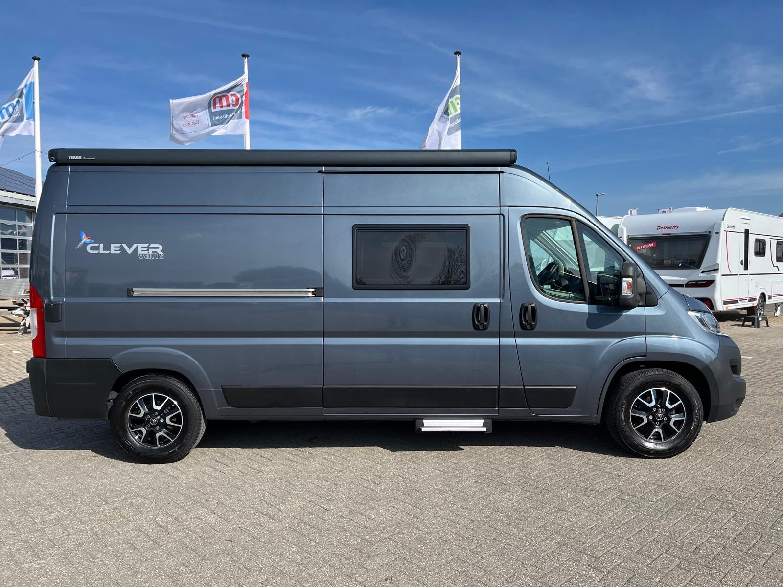 Nieuw binnen deze nette en vol uitgeruste Clever Celebration 600 buscamper! Rijkelijk uitgerust met o.a. navigatie, camera, trekhaak en een Thule luifel.
