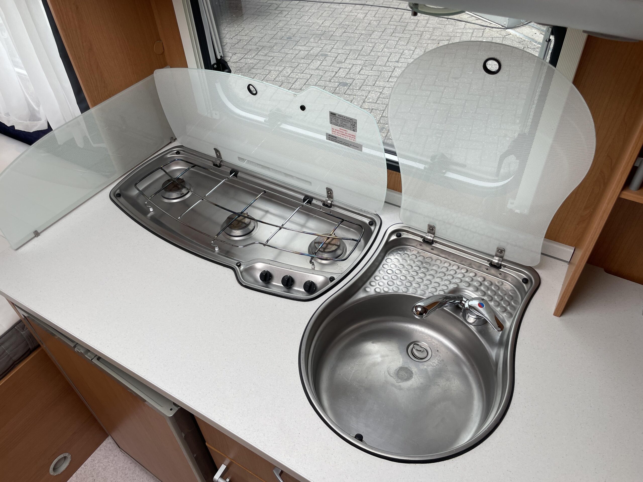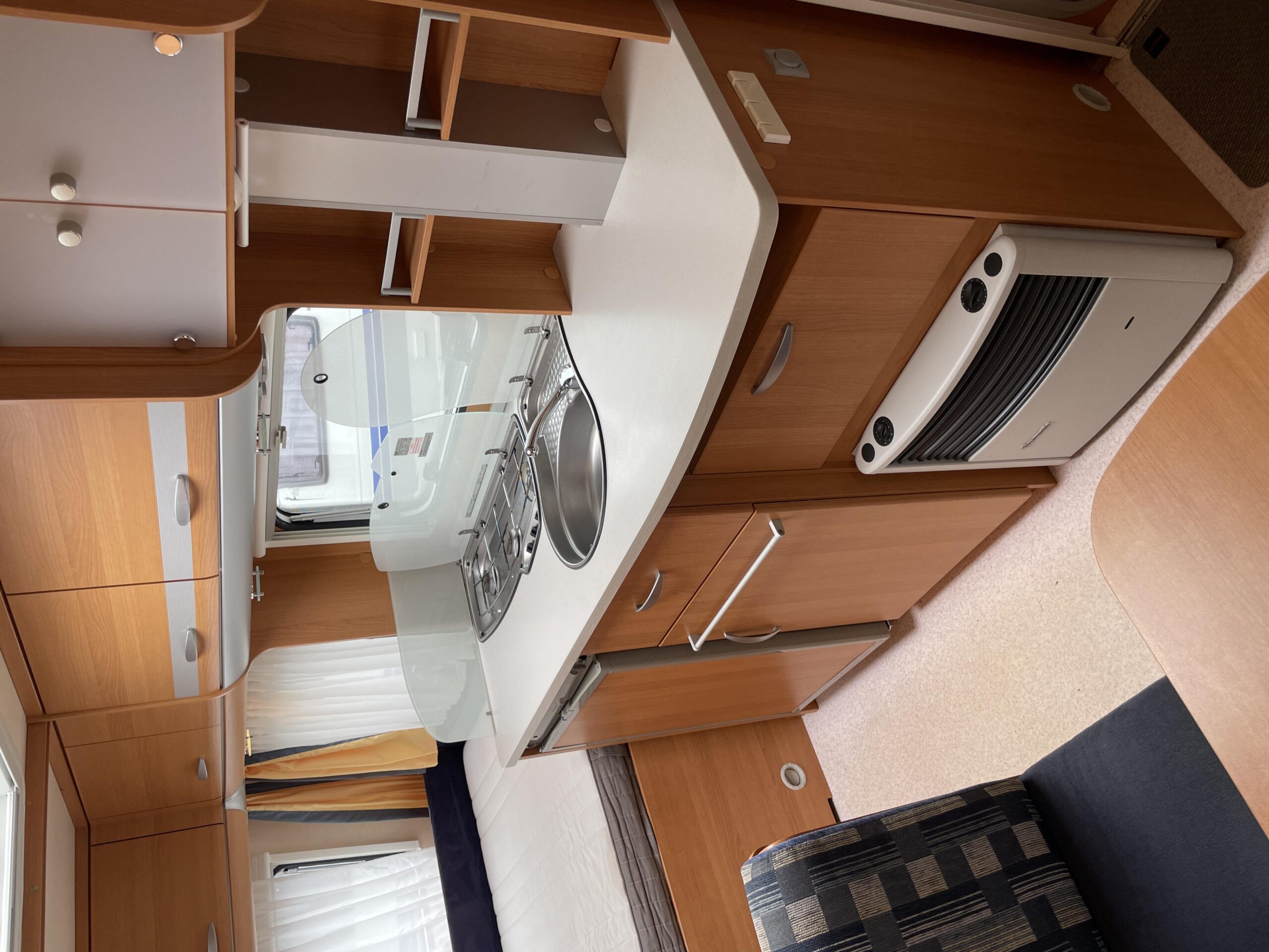 De caravan is voorzijn van een Autarkinstallatie wat inhoud dat u alle verlichten en waterkranen kunt bedienen via de accu.